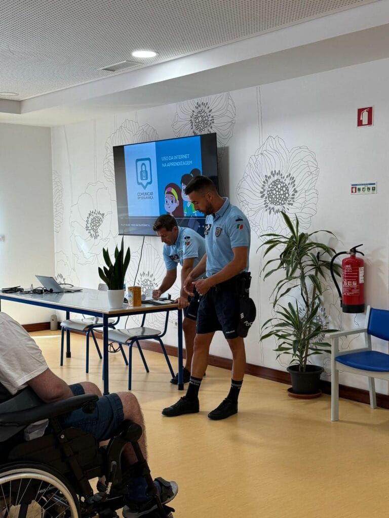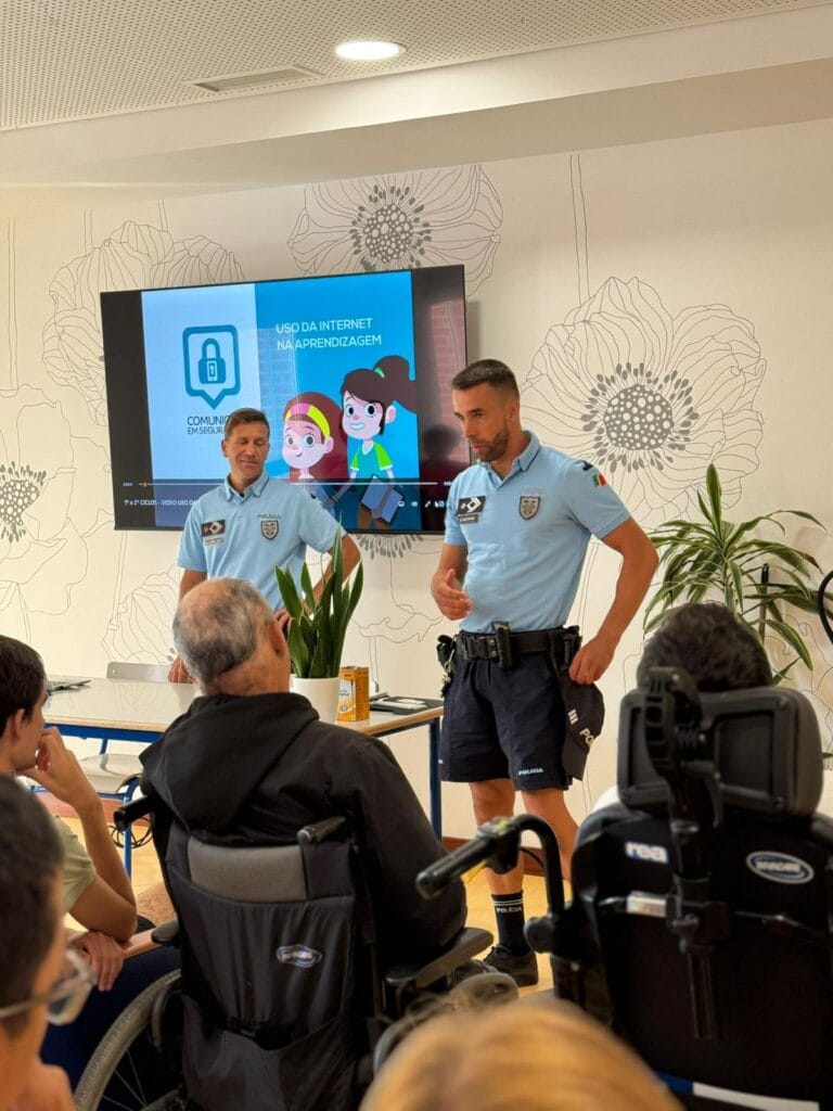 Integrada no trabalho contínuo de desenvolvimento de competências socio emocionais, esta sessão teve como objetivo sensibilizar os utentes dos CACI’s para temas fundamentais relacionados com a segurança. Foram abordados o papel da Polícia de Segurança Pública, a forma de reconhecer um agente, a utilização segura da internet e das redes sociais, bem como a prevenção face aos riscos associados ao meio digital.