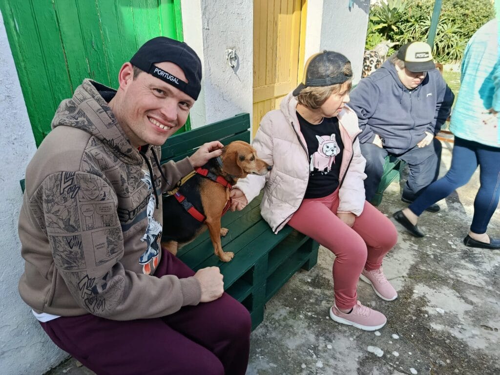 Nestas sessões de intervenção assistida por animais observamos com regularidade aconteceram momentos de muita alegria e cumplicidade entre os nossos participantes e os amigos de 4patas, que fazem as delícias de todos. O ambiente de descanso e descontração proporciona o cenário perfeito para a interação, para superar medos e enriquecer o dia dos participantes.