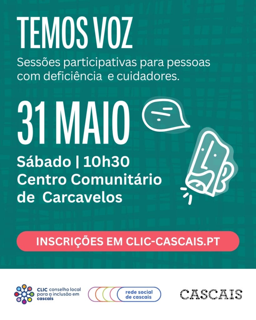 Apelamos à participação das pessoas com deficiência e cuidadores para que se inscrevam em: CLIC-CASCAIS.PT