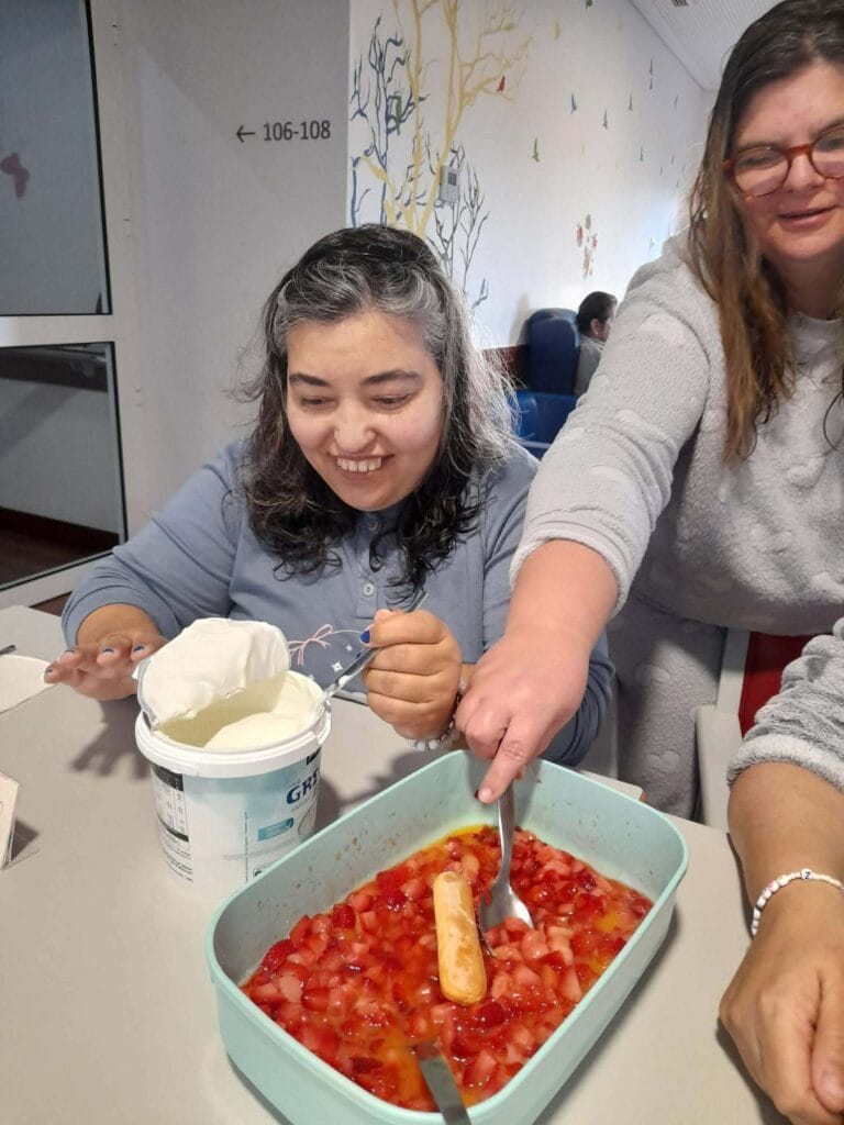 Reunidas em torno de uma mesa cheia de sabores, onde Palitos de la reine, morangos frescos e iogurte foram os protagonistas de uma atividade de culinária.